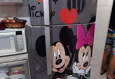 Envelopamento de móveis e eletrodomésticos com acabamento impecável e adesivos personalizados.